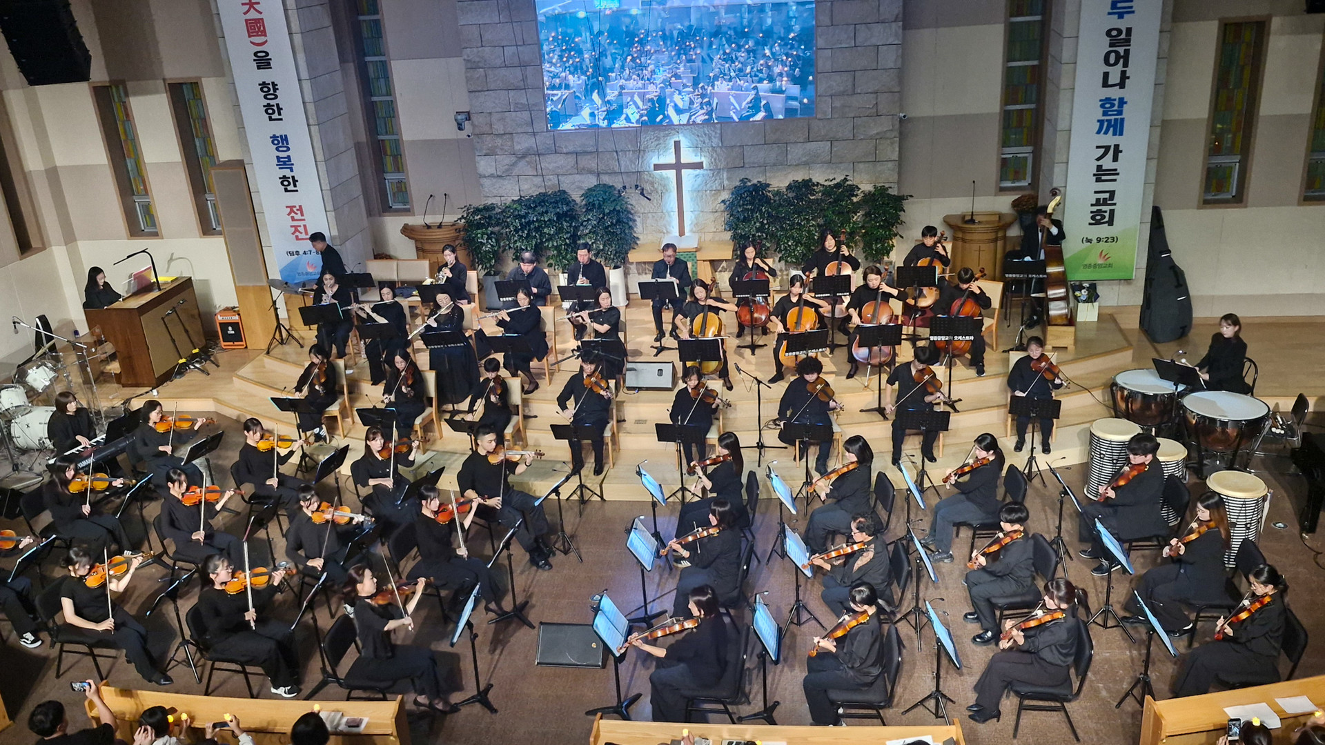 등록 교인 및 학생들로 이루어진 관현악 오케스트라로 주일 3부와 4부 찬양대와 함께 찬양합니다.